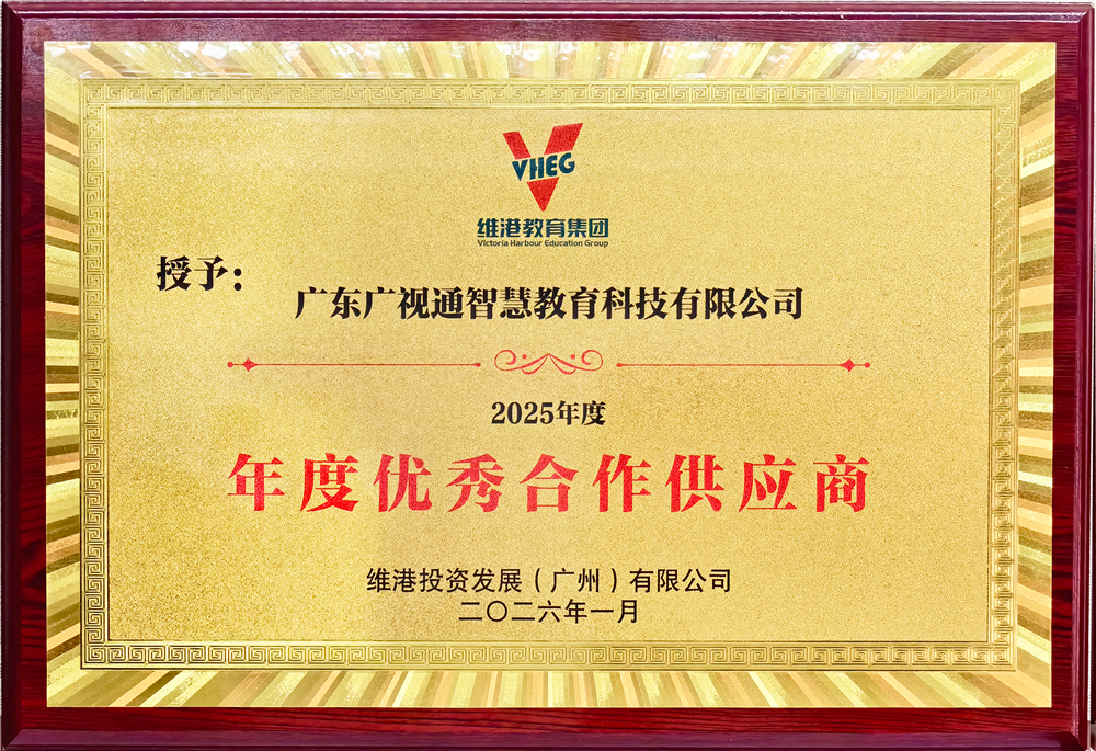 这份荣誉不仅是维港教育集团对广视通产品品质与服务能力的充分肯定,更是对公司长期坚守“质量与服务并重”发展战略的有力佐证。多年来,广视通始终将品质作为企业发展的根基,将服务作为链接客户的桥梁,这份认可既彰显了公司发展理念的前瞻性与正确性,也为双方后续深化战略合作、实现资源互补筑牢了坚实基础。